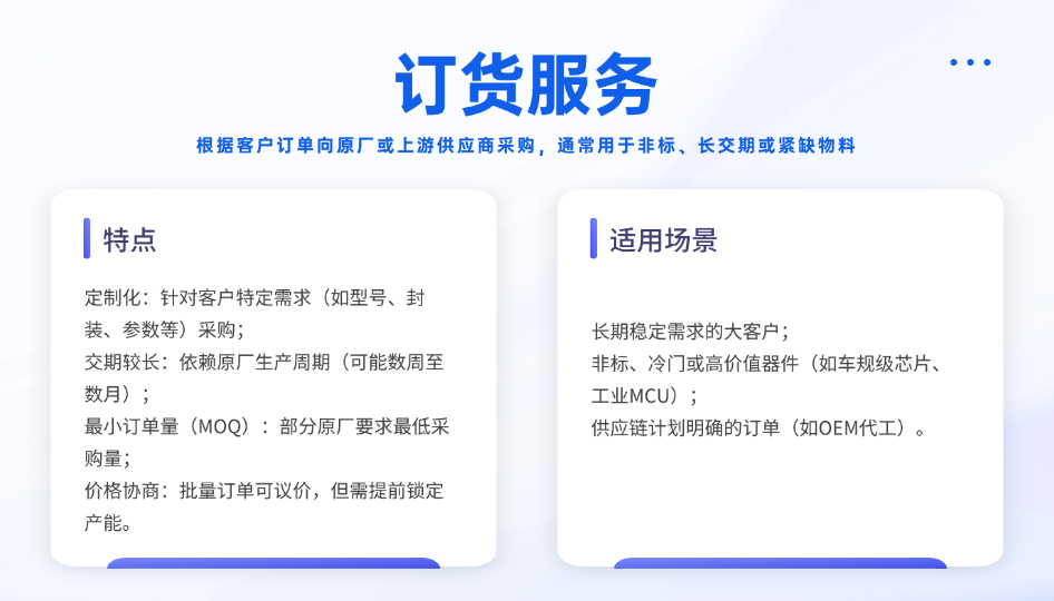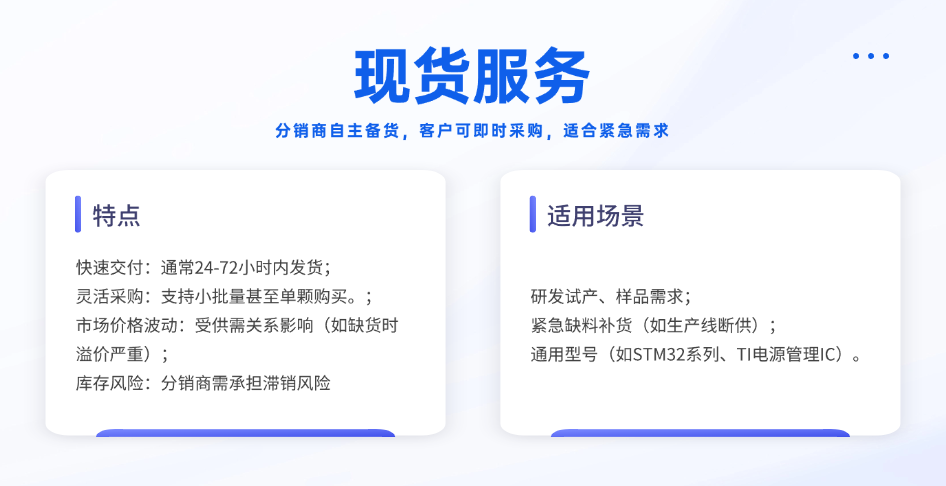 現(xiàn)貨服務是半導體分銷商提升競爭力的重要手段。在市場需求瞬息萬變的當下,擁有充足的現(xiàn)貨庫存能夠快速響應客戶的緊急需求,為客戶節(jié)省時間成本,提升客戶滿意度。