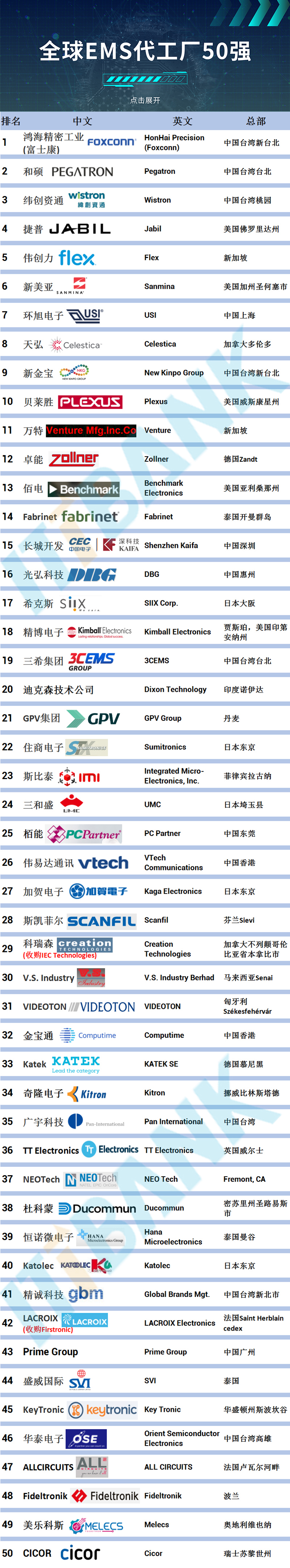 近期,ittbank發(fā)布了最新的全球EMS代工領(lǐng)域50強(qiáng)企業(yè)排行榜。這份報(bào)告不僅反映了當(dāng)前全球EMS行業(yè)的競(jìng)爭(zhēng)格局,還為行業(yè)內(nèi)外人士提供了寶貴的數(shù)據(jù)參考與趨勢(shì)洞察。