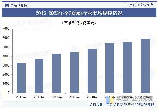 根據(jù)市場(chǎng)研究機(jī)構(gòu)的數(shù)據(jù)分析顯示,在2016年至2023年間,全球EMS行業(yè)的市場(chǎng)規(guī)模呈現(xiàn)出穩(wěn)步增長(zhǎng)的趨勢(shì),由3292億美元增至5436億美元,平均每年增長(zhǎng)率約為8.72%。這一快速增長(zhǎng)的背后反映了全球經(jīng)濟(jì)對(duì)高質(zhì)量電子產(chǎn)品需求的增長(zhǎng),同時(shí)也得益于EMS企業(yè)在技術(shù)創(chuàng)新方面的不懈努力以及生產(chǎn)能力的有效擴(kuò)張。